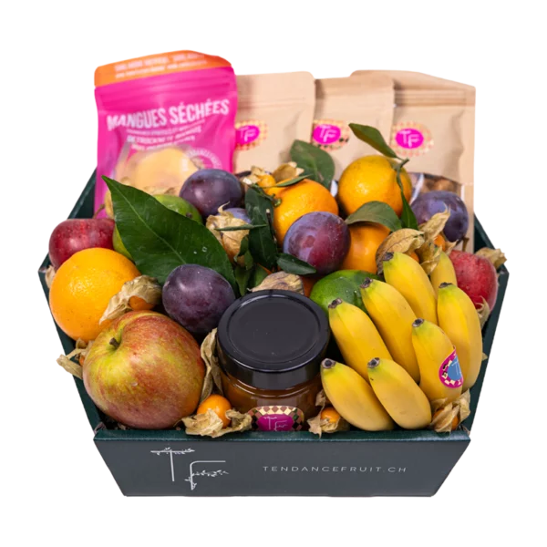 Attention, booster immunitaire en vue ! Avec ce panier ultra coloré, faites le plein de vitalité sous toutes ses formes : des fruits frais, des fruits séchés artisanaux ou encore des confitures gourmandes, difficile de ne pas faire plaisir avec cet assortiment. Définitivement à offrir!